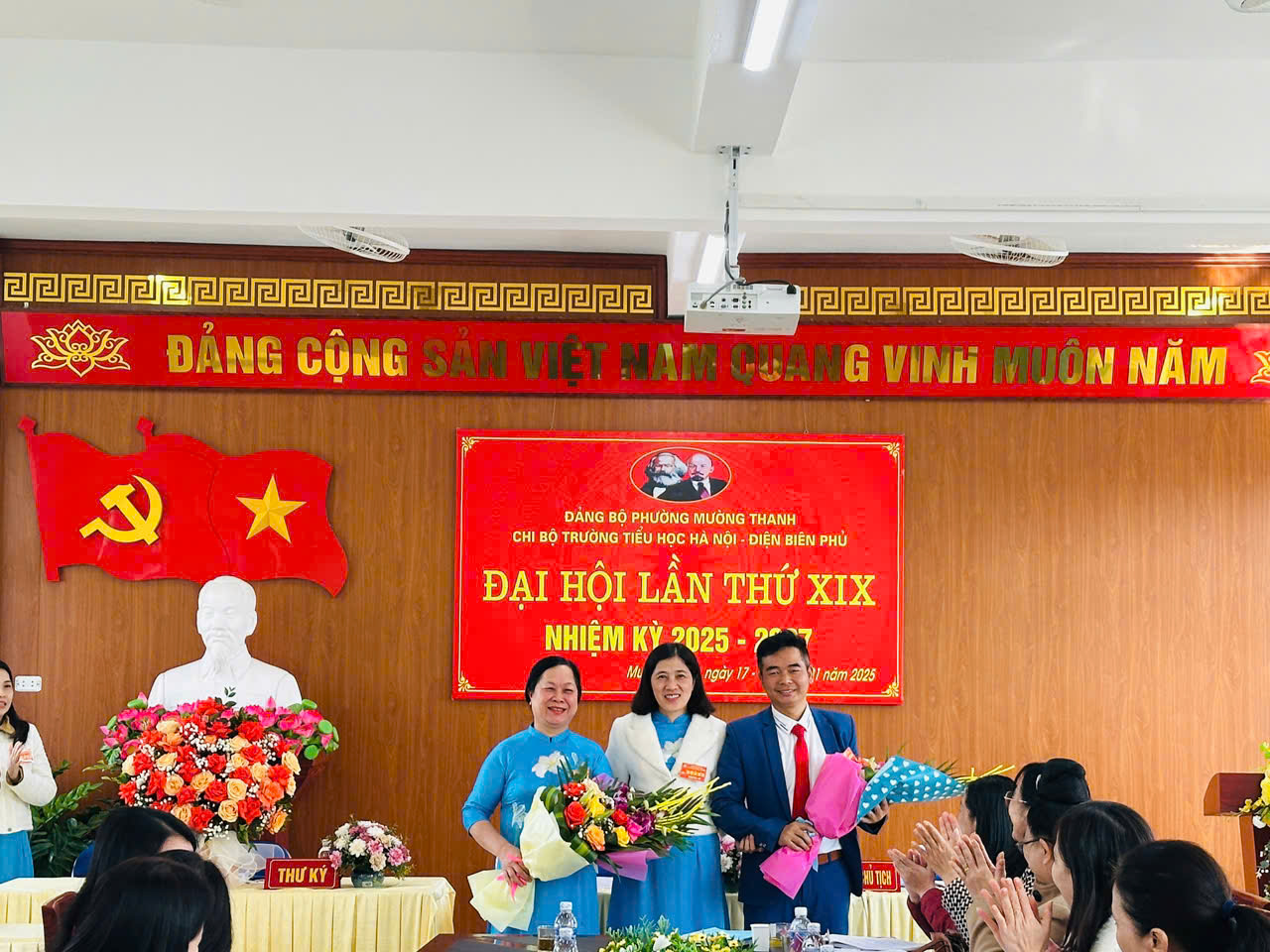 Thực hiện Điều lệ Đảng Cộng sản Việt Nam; Thực hiện Hướng dẫn số 05-HD/ĐU ngày 25/10/2025 của Đảng ủy phường Mường Thanh về Đại hội các chi bộ trực thuộc nhiệm kỳ 2025 - 2027. Sáng ngày 18/1/2025 Chi bộ Trường Tiểu học Hà Nội - Điện Biên Phủ đã long trọng tổ chức Đại hội Chi bộ nhiệm kỳ 2025 - 2027 nhằm đánh giá kết quả thực hiện Nghị quyết Đại hội nhiệm kỳ 2022 - 2025 và đề ra phương hướng, nhiệm vụ nhiệm kỳ 2025 - 2027, bầu cấp ủy Chi bộ, Bí thư, phó Bí thư chi bộ nhiệm kỳ 2025 - 2027. Về dự và chỉ đạo Đại hội về phía Đảng ủy phường Mường Thanh có: Đ/c Nguyễn Thị Oanh - Thành uỷ viên, Bí thư Đảng uỷ phường, đ/c Bùi Thị Khanh – Phó Bí thư Thường trực Đảng uỷ phường, đ/c Lò Thị Hiêng – Chủ tịch Ủy ban MTTQ phường, PCT Hội đồng TĐKT phường Mường Thanh; về phía Phòng GD&ĐT có đ/c Hoàng Bích Huệ - Nhóm trưởng Chuyên môn Tiểu học, đ/c Thẩm Thị Nga- Chuyên môn Tiểu học đã đến dự và chúc mừng Đại hội. Tại Đại hội, đồng chí Lê Thị Nga Bí thư Chi bộ đã trình bày báo cáo chính trị, đánh giá những thành tựu nổi bật trong công tác lãnh đạo, chỉ đạo của Chi bộ trong nhiệm kỳ qua. Báo cáo nhấn mạnh các kết quả đạt được trong việc nâng cao chất lượng giáo dục, phát huy văn hóa học đường và vai trò nòng cốt của Chi bộ trong các hoạt động đoàn thể, xã hội. Đại hội cũng đã thảo luận sôi nổi, đóng góp ý kiến vào dự thảo phương hướng, nhiệm vụ nhiệm kỳ 2025 - 2027. Chi bộ tiếp tục khẳng định vai trò lãnh đạo toàn diện, tập trung vào các nhiệm vụ trọng tâm như: Nâng cao chất lượng giáo dục toàn diện, đẩy mạnh chuyển đổi số trong quản lý và giảng dạy, xây dựng đội ngũ cán bộ, giáo viên đoàn kết, vững mạnh. Với tinh thần đoàn kết, dân chủ, đại hội diễn ra nghiêm túc; mỗi đảng viên của chi bộ đã ý thức rất rõ về quyền và nghĩa vụ của mình trong việc bầu chọn ra người đủ đức, đủ tài qua từng lá phiếu. Đại hội đã tiến hành bầu Chi ủy, Bí thư, Phó bí thư theo đúng quy định của điều lệ Đảng và đã xây dựng thành công Nghị quyết của chi bộ trong nhiệm kỳ 2025-2027. Kết quả bầu cử, đồng chí Lê Thị Nga được bầu giữ chức vụ Bí thư Chi bộ, đồng chí Nguyễn Thị Mỹ Hương - Phó Bí thư chi bộ và các đồng chí Nguyễn Thị Kim Anh, Lê Thị Tuyên - Chi ủy viên nhiệm kì 2025-2027 (01 đ/c để khuyết chờ khi có quyết định bổ nhiệm Ban giám hiệu mới). Đại hội đã tiến hành bầu cử 05 đại biểu dự Đại hội Đảng bộ phường khoá VIII, nhiệm kỳ 2025-2030. Đại hội Chi bộ nhiệm kì 2025 - 2027 của trường Tiểu học Hà Nội - Điện Biên Phủ đã thành công rực rỡ. Mỗi thành viên trong cấp ủy mới và tập thể cấp ủy nhiệm kỳ mới nguyện đoàn kết, trách nhiệm, ra sức rèn luyện về mọi mặt để góp phần thực hiện thắng lợi Nghị quyết Đại hội chi bộ đã đề ra./. Sau đây là một số hình ảnh tại Đại hội Chi bộ Trường Tiểu học Hà Nội – Điện Biên Phủ:
