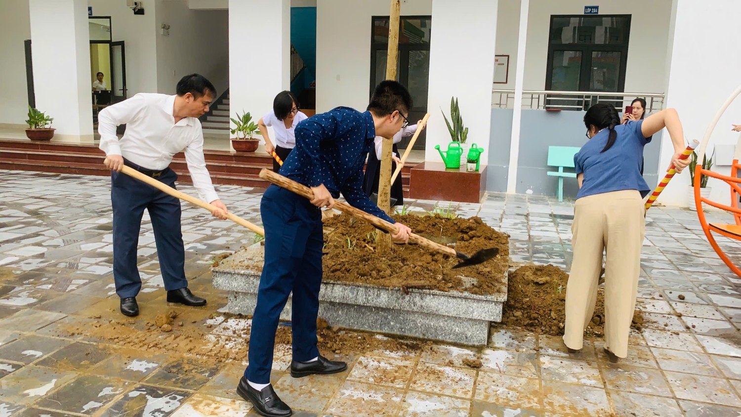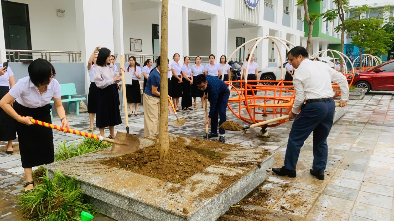 Trong không khí trang trọng và ấm áp, các đồng chí lãnh đạo đã cùng tập thể cán bộ, giáo viên và học sinh nhà trường tham gia trồng cây lưu niệm. Những cây xanh hôm nay không chỉ là món quà ý nghĩa để tô điểm cảnh quan trường học thêm xanh – sạch – đẹp, mà còn mang thông điệp sâu sắc về sự quan tâm của Đảng bộ, chính quyền địa phương đối với sự nghiệp giáo dục, cũng như gửi gắm niềm tin, hy vọng về thế hệ tương lai.