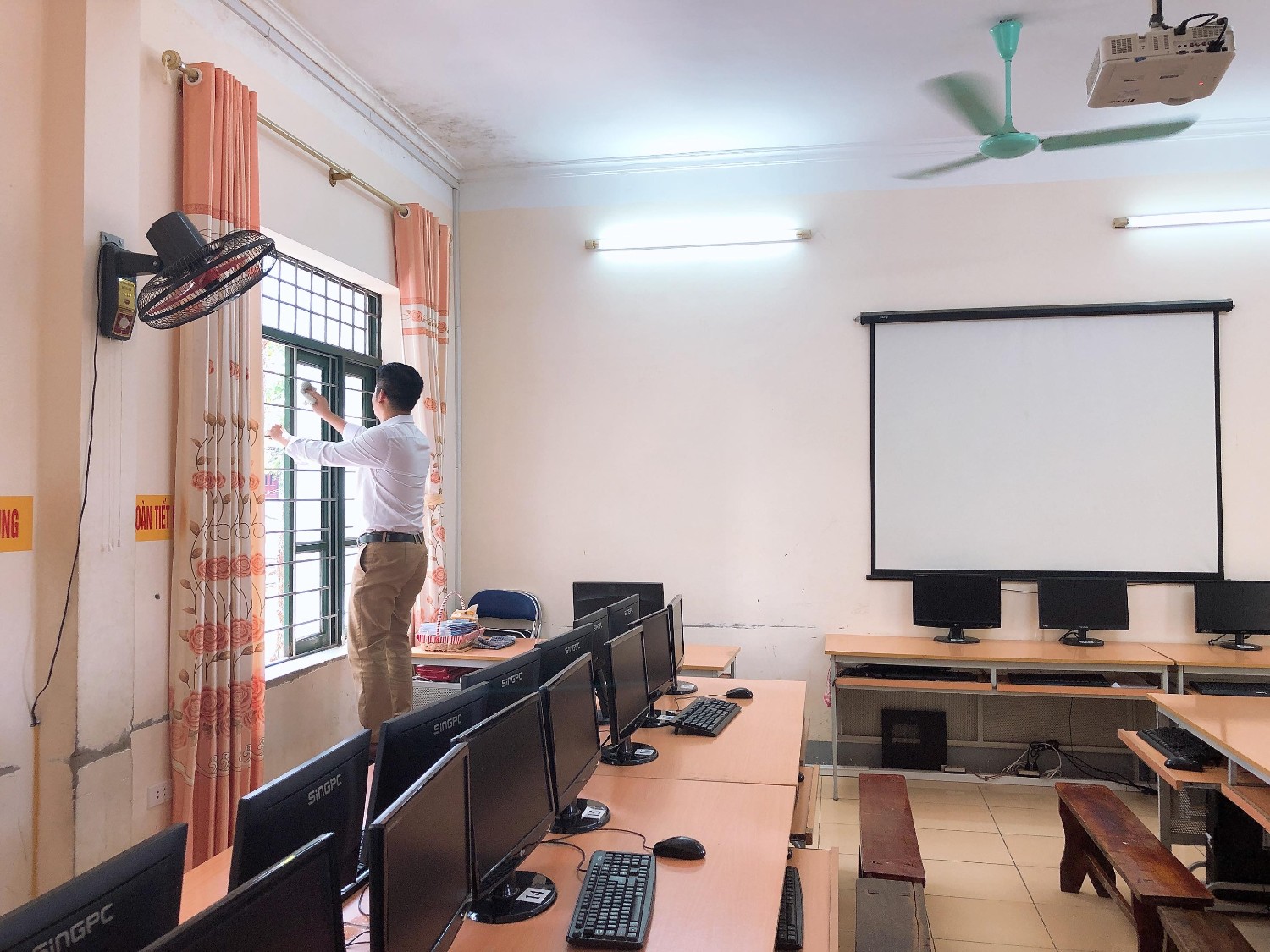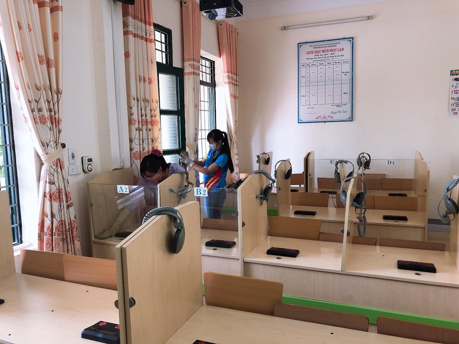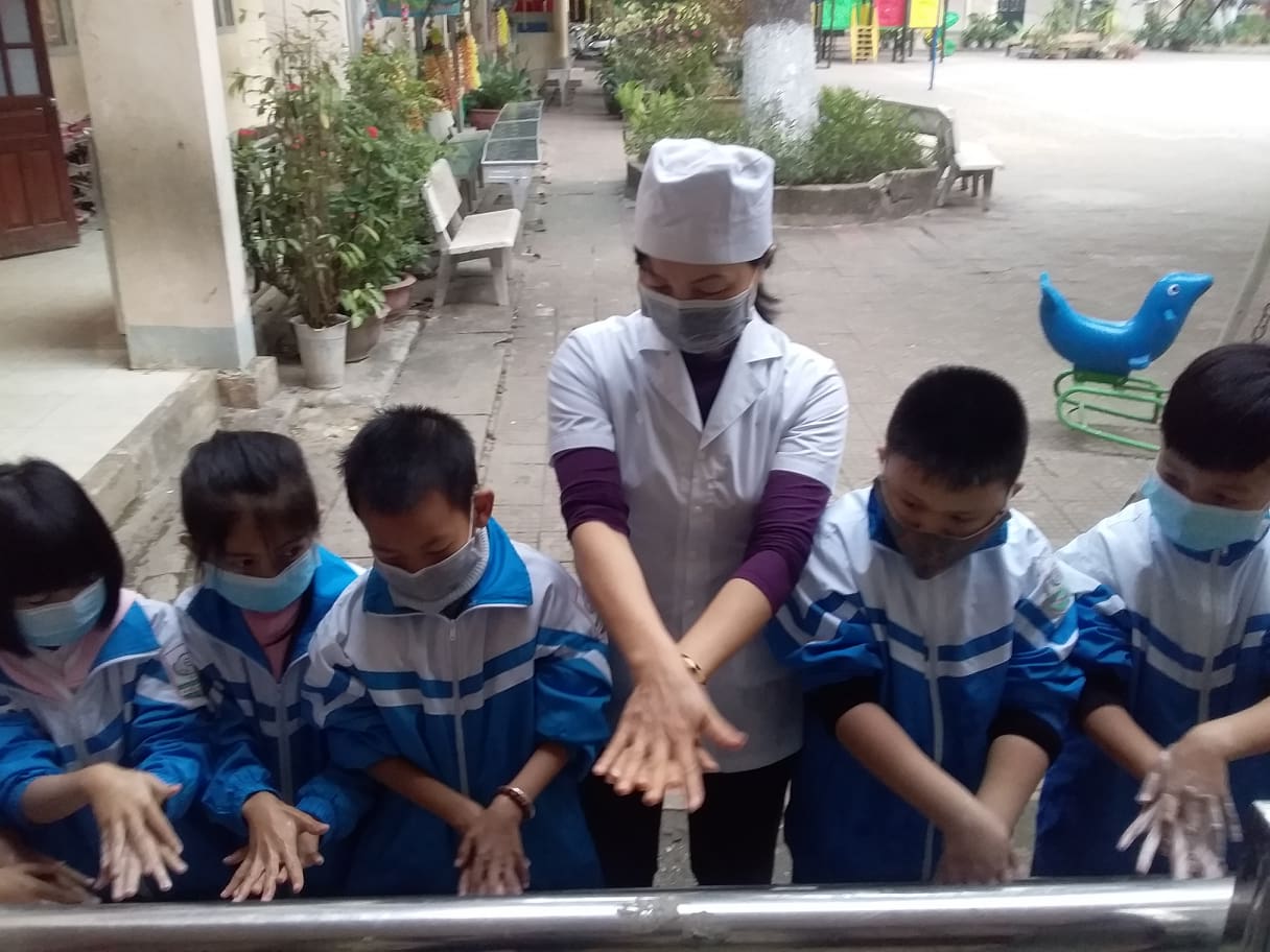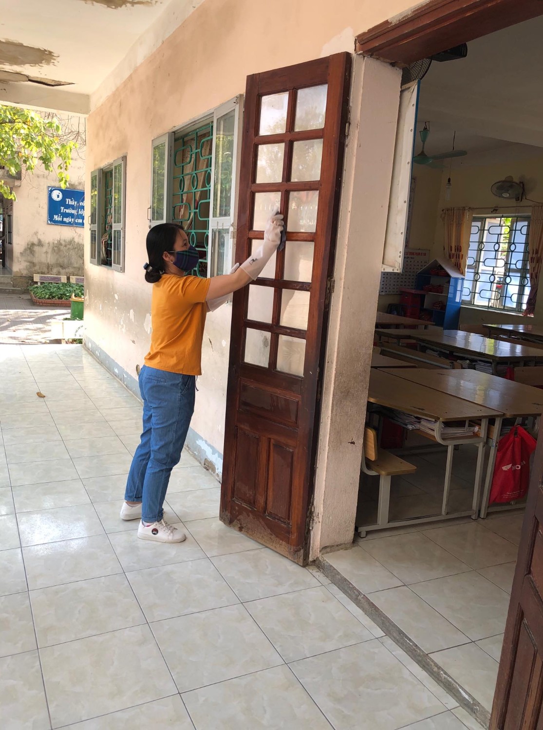 Thầy và trò trường TH Hà Nội - Điện Biên Phủ vệ sinh trường, lớp học phòng chống dịch bệnh Covid-19