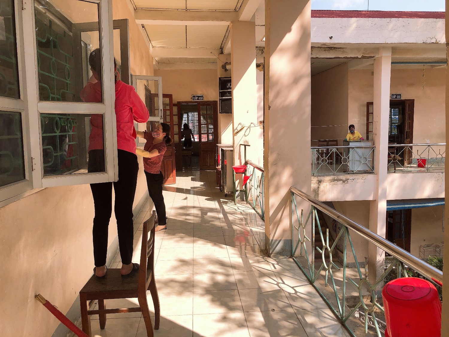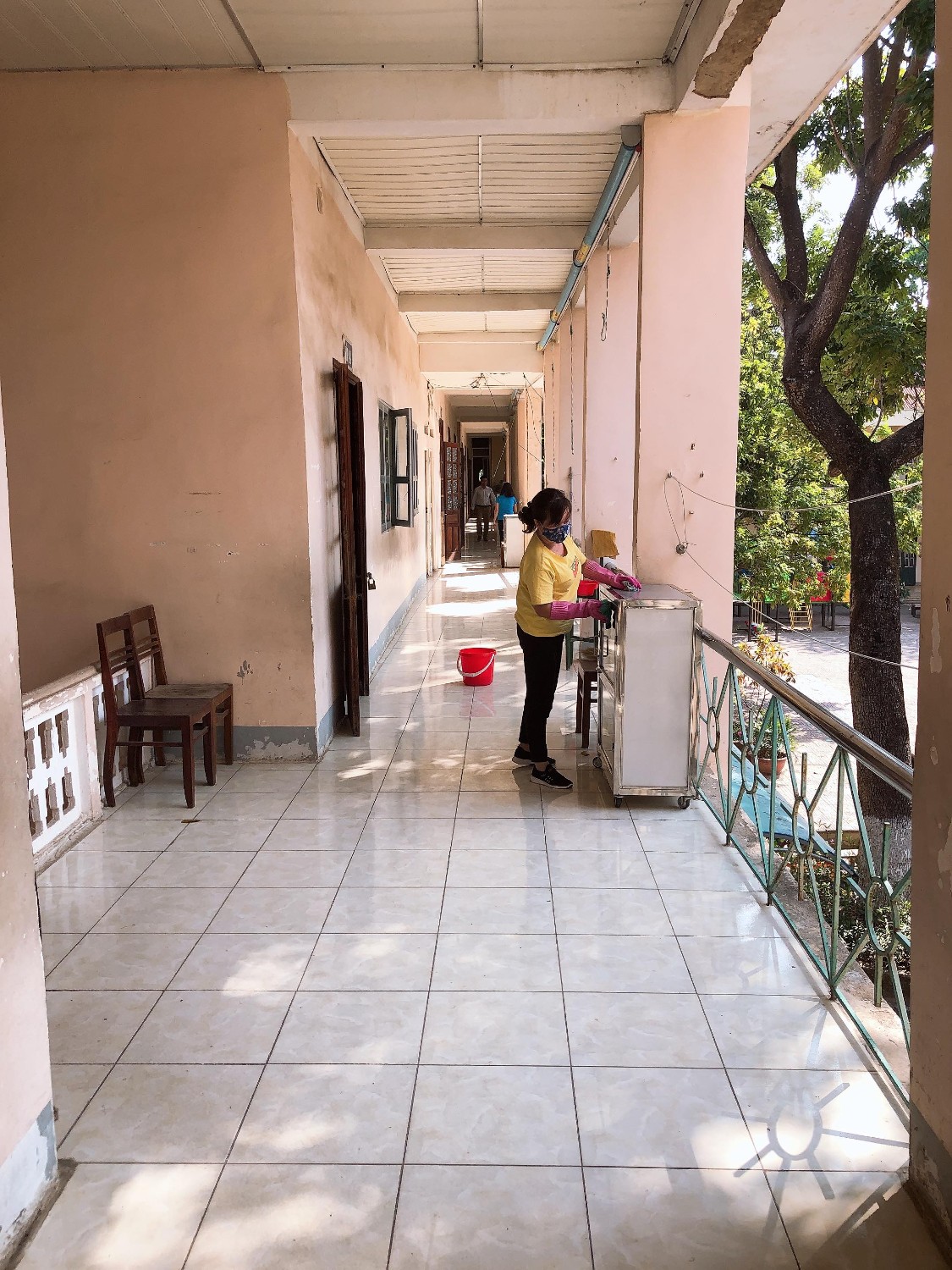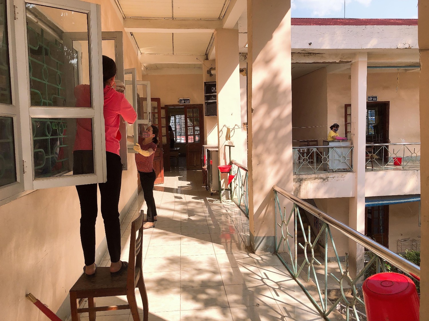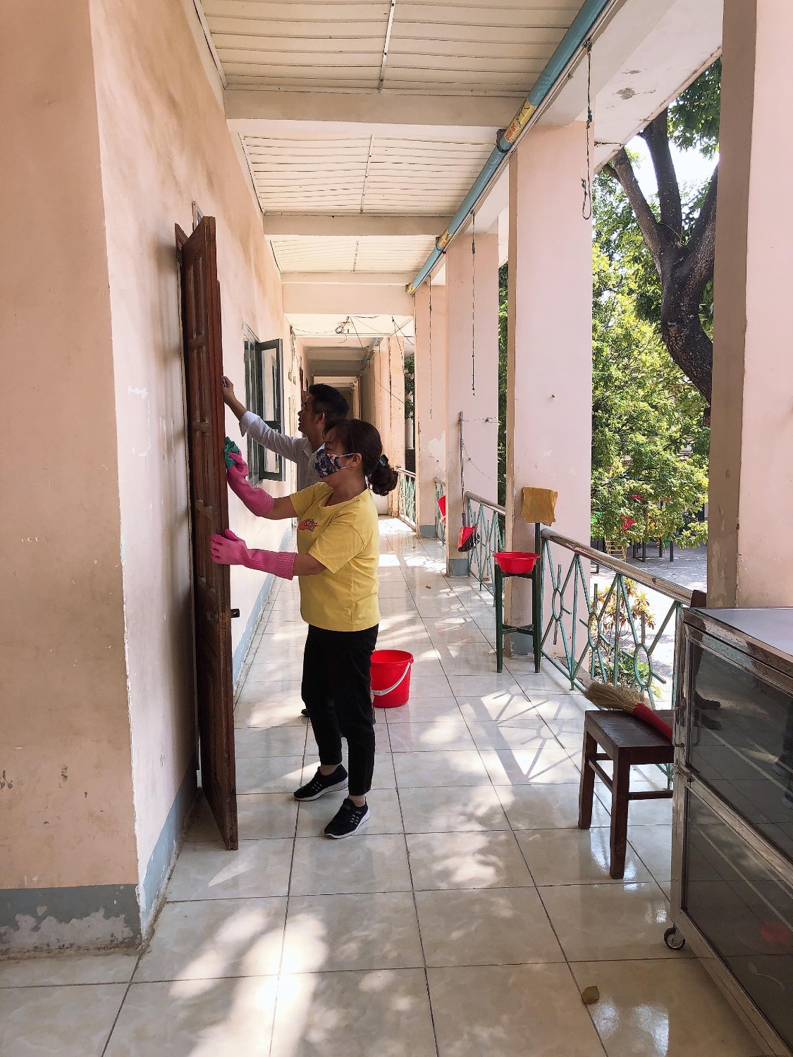 Thầy và trò trường TH Hà Nội - Điện Biên Phủ vệ sinh trường, lớp học phòng chống dịch bệnh Covid-19