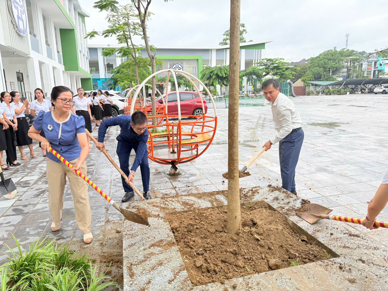 Trong không khí trang trọng và ấm áp, các đồng chí lãnh đạo đã cùng tập thể cán bộ, giáo viên và học sinh nhà trường tham gia trồng cây lưu niệm. Những cây xanh hôm nay không chỉ là món quà ý nghĩa để tô điểm cảnh quan trường học thêm xanh – sạch – đẹp, mà còn mang thông điệp sâu sắc về sự quan tâm của Đảng bộ, chính quyền địa phương đối với sự nghiệp giáo dục, cũng như gửi gắm niềm tin, hy vọng về thế hệ tương lai.