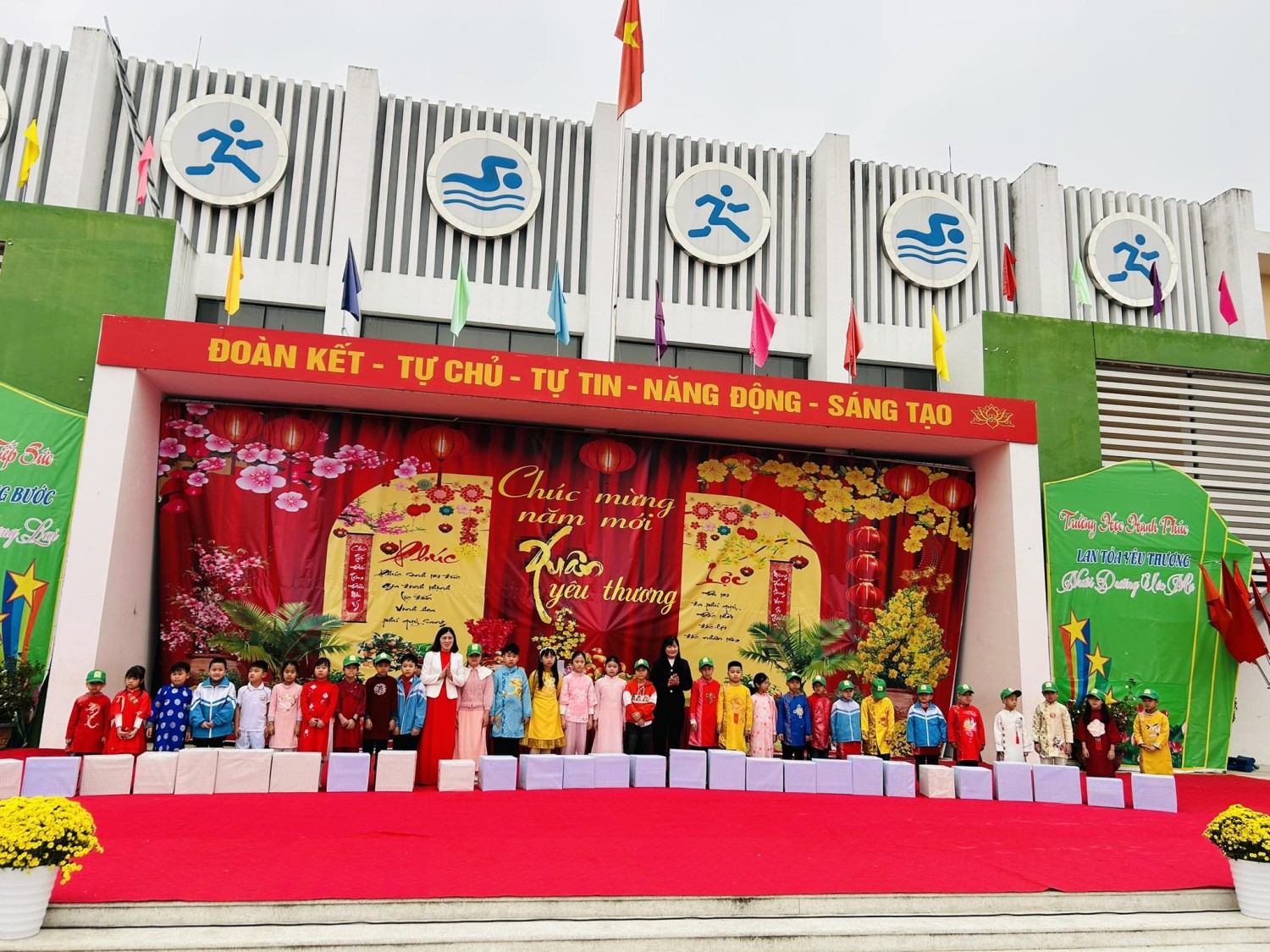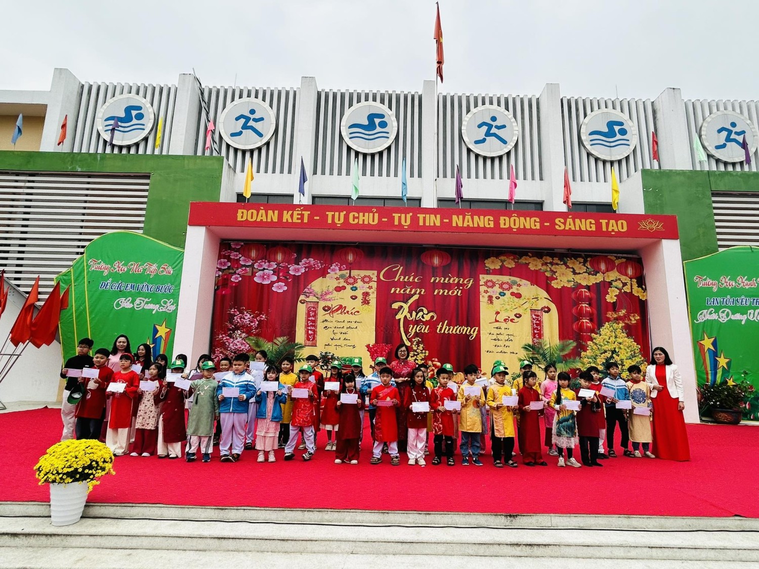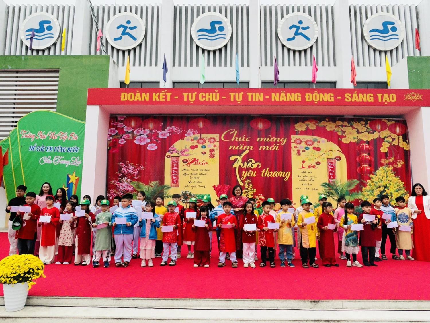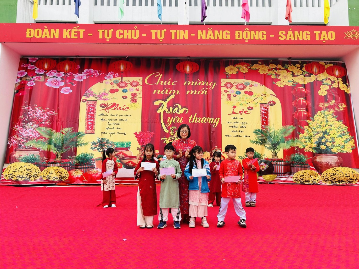 Nhân dịp năm mới, nhà trường xin kính chúc quý vị đại biểu, quý phụ huynh, thầy cô giáo cùng toàn thể các em học sinh một năm mới Hạnh phúc – An khang – Thịnh vượng.