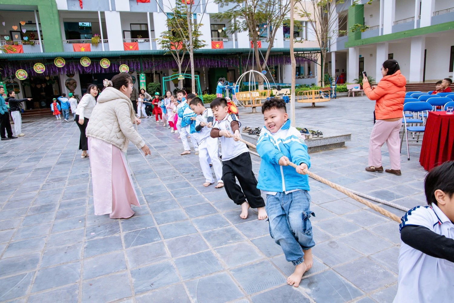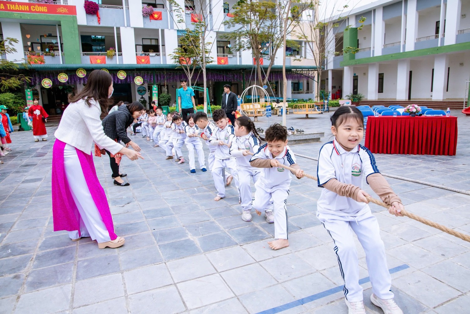 Các tiết mục văn nghệ rực rỡ sắc xuân mang đến bầu không khí sôi động, tươi vui. Những ván cờ vua thể hiện bản lĩnh, tư duy và sự tập trung cao độ. Các trận kéo co gay cấn thắp lên tinh thần đồng đội và ý chí quyết tâm. Chuỗi trò chơi dân gian theo từng khối lớp diễn ra hào hứng, gắn kết tập thể và tạo nên những khoảnh khắc đáng nhớ.