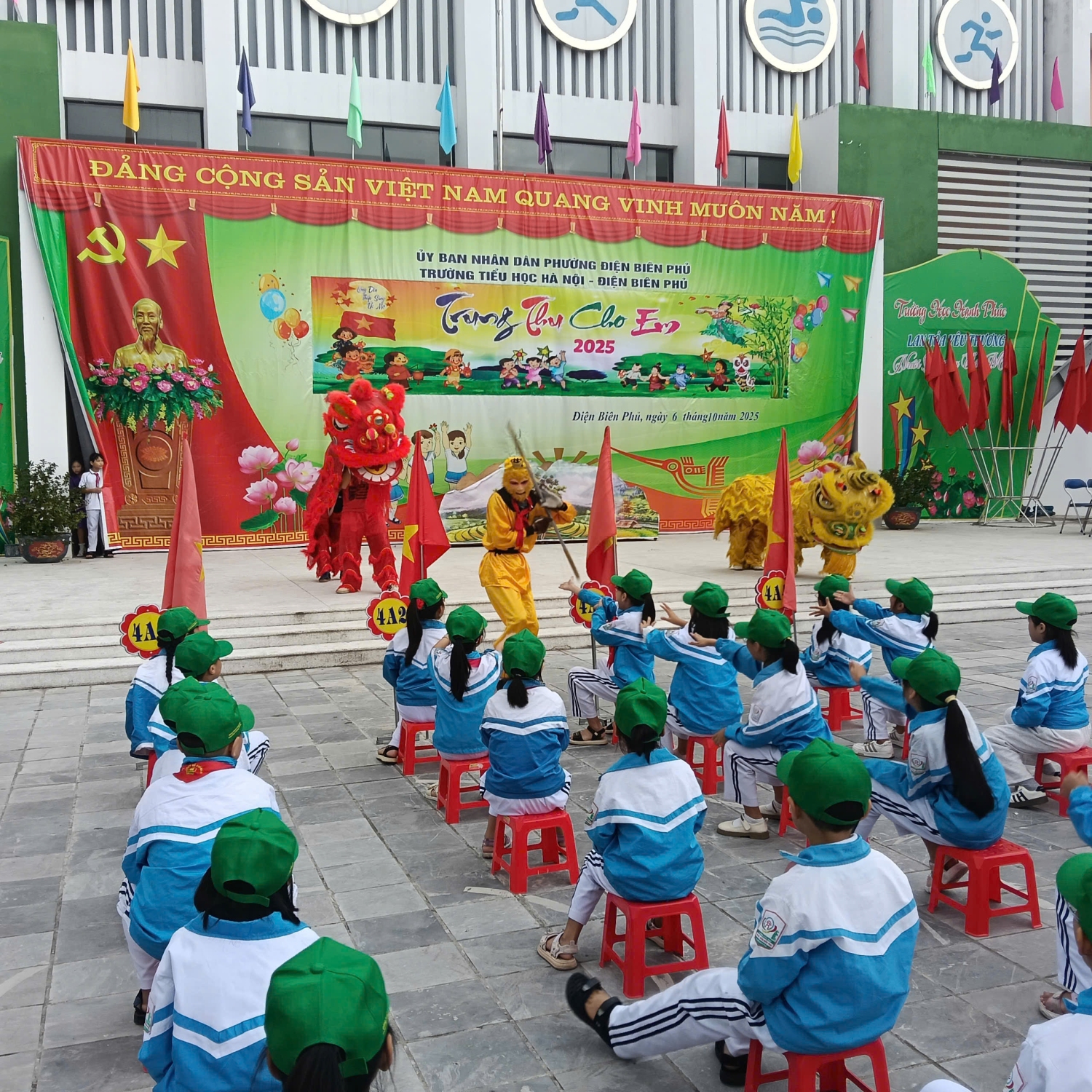 Hòa chung không khí rộn ràng của thiếu nhi cả nước đón Tết Trung thu, sáng ngày 6 tháng 10 năm 2025, Trường Tiểu học Hà Nội - Điện Biên Phủ đã tổ chức chương trình “Trung thu cho em 2025” cho toàn thể các em học sinh với nhiều hoạt động sôi nổi, ý nghĩa. Mở đầu chương trình, cô Lê Thị Nga – Bí thư Chi bộ, Hiệu trưởng nhà trường đã trang trọng đọc thư chúc Tết Trung thu của Chủ tịch nước Lương Cường gửi tới thiếu nhi cả nước. Những lời nhắn nhủ đầy yêu thương ấy không chỉ tiếp thêm niềm vui cho các em mà còn thể hiện sự quan tâm sâu sắc của Đảng, Nhà nước tới thế hệ măng non - những chủ nhân tương lai của đất nước. Chương trình được tiếp nối bằng chuỗi hoạt động văn hóa, nghệ thuật phong phú và gần gũi: múa lân, biểu diễn văn nghệ, trả lời các câu đố vui về Tết Trung thu, phá cỗ… Mỗi hoạt động đều là một mảnh ghép góp phần tạo nên bức tranh Trung thu đầy màu sắc, chan chứa tình thân. Đặc biệt đây còn là dịp để các em được học cách sẻ chia, gắn kết, rèn luyện kỹ năng sống và nuôi dưỡng tâm hồn. Sau khi tham gia các hoạt động tập thể, học sinh trở về lớp để cùng nhau phá cỗ Trung thu trong không khí ấm áp, vui vẻ. Những ánh mắt hồn nhiên, nụ cười rạng rỡ của các em đã thể hiện rõ niềm hạnh phúc khi được nhận sự quan tâm, yêu thương từ cha mẹ, thầy cô và nhà trường. Tết Trung thu năm 2025 đã khép lại nhưng hình ảnh những màn múa lân sôi động; không gian ấm áp của mâm cỗ “Đêm hội trăng rằm”… sẽ mãi là những kỉ niệm đẹp trong hành trang tuổi thơ của các em. Chương trình không chỉ mang đến một mùa Trung thu trọn vẹn, mà còn góp phần bồi đắp tình yêu văn hóa dân tộc, khơi dậy lòng biết ơn và xây dựng một môi trường giáo dục an toàn - hạnh phúc - toàn diện tại Trường Tiểu học Hà Nội - Điện Biên Phủ./. Sau đây là một số hình ảnh trong Ngày Tết Trung thu của học sinh trường TH Hà Nội – Điện Biên Phủ:
